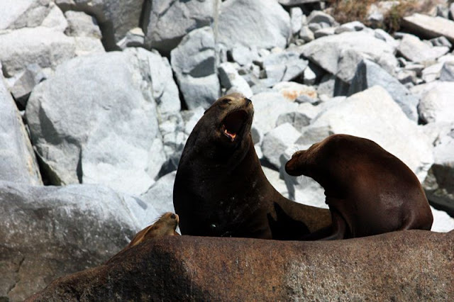 Et maintenant quelques très belles photos d’Arnaud qui a aussi trainé le mois dernier du côté de Los Frailes et du Cabo Pulmo où il a pu voir les mêmes lions de mer que ceux que je vous ai déjà présentés. Il était en kayak, mais vous ne verrez pas les gros males qui ont cherché à l’impressionner,